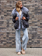Длина куртки — 69 см по спинке, рукава — 61 см, силуэт слегка приталенный.